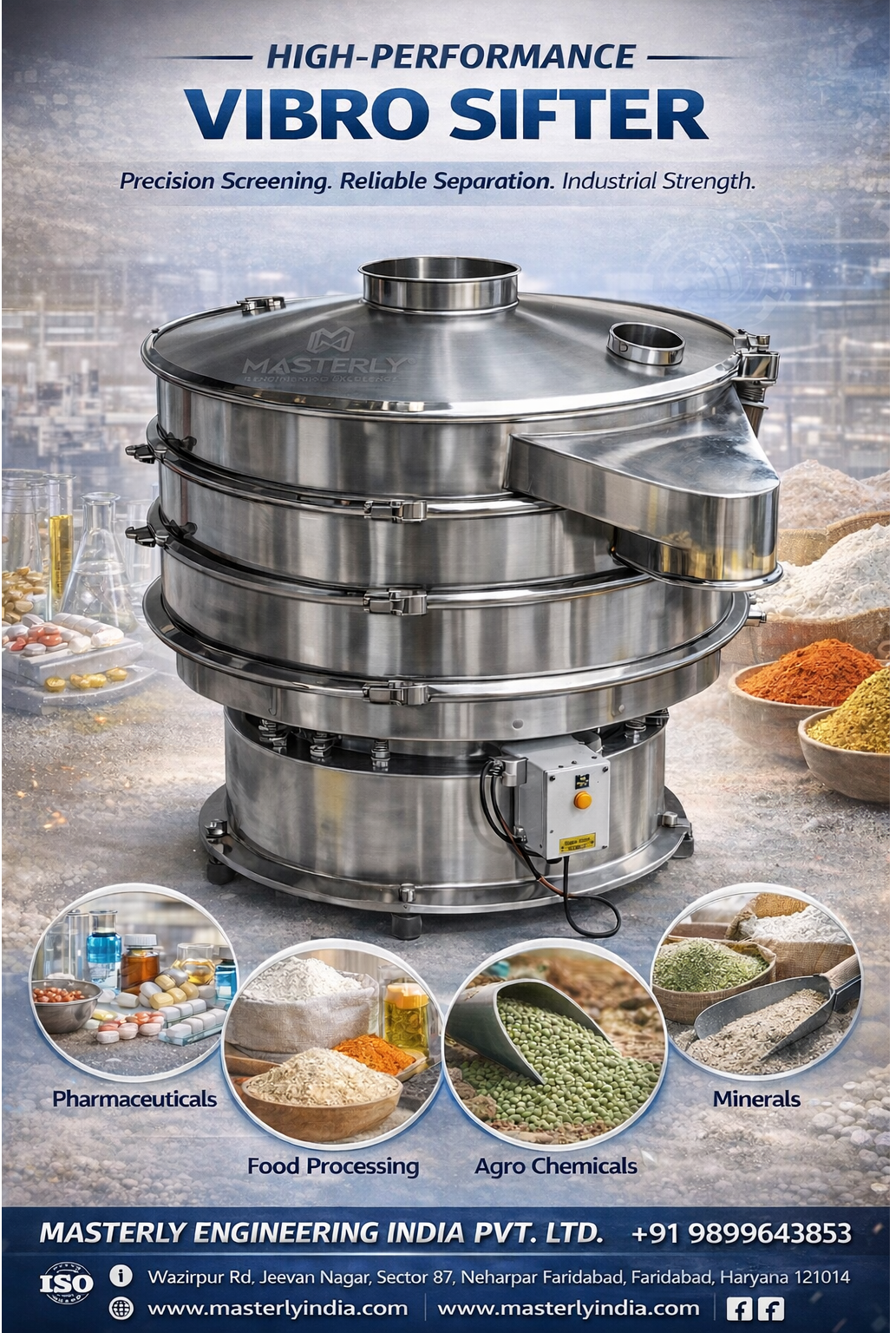 Masterly Engineering India Pvt Ltd Vibro Sifters are designed to solve exactly that. Built for high throughput and continuous operation, our machines deliver accurate particle separation, improved product consistency, and reliable performance in demanding industrial environments all while keeping maintenance and operating costs low.