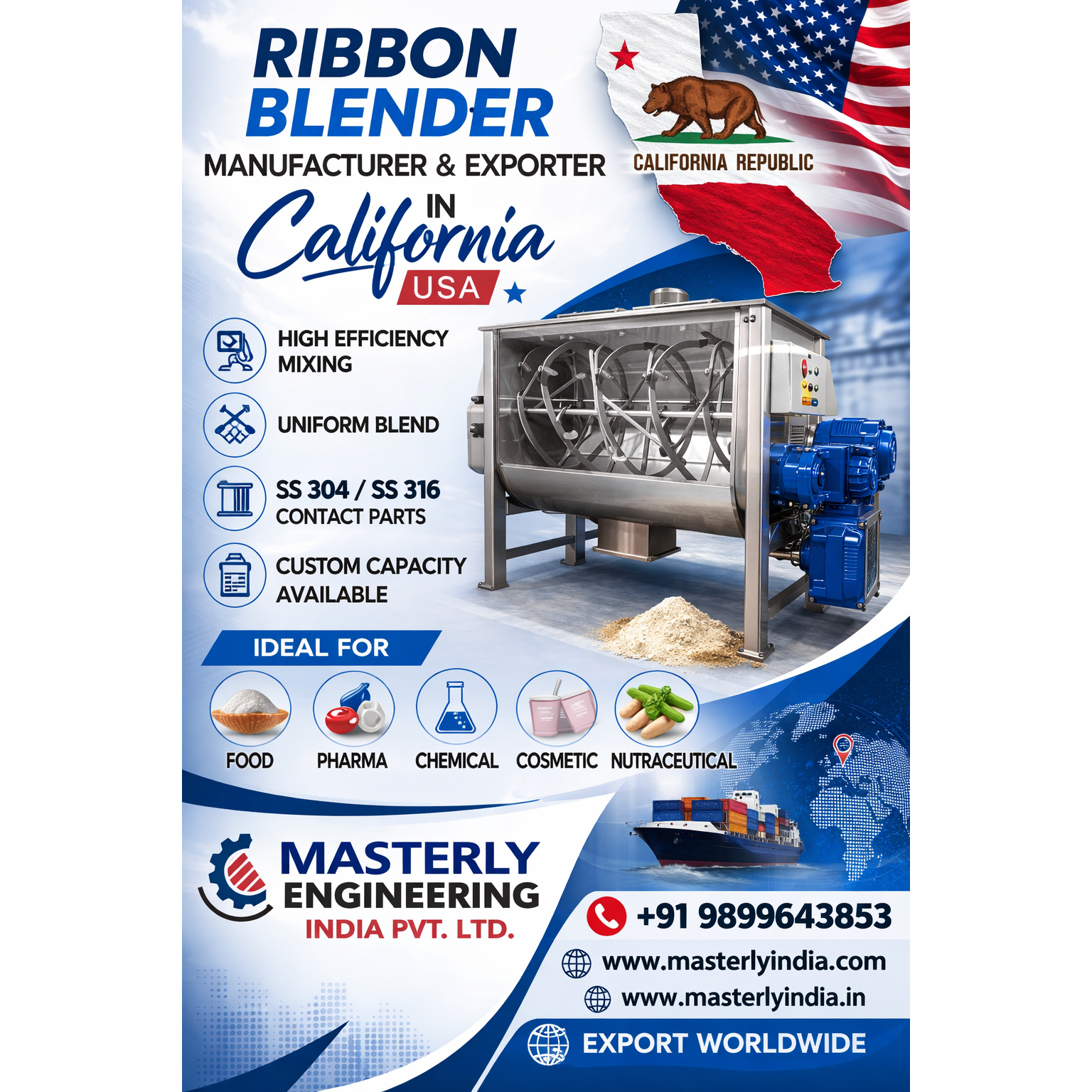 **RIBBON BLENDER MANUFACTURER & EXPORTER β CALIFORNIA, USA**